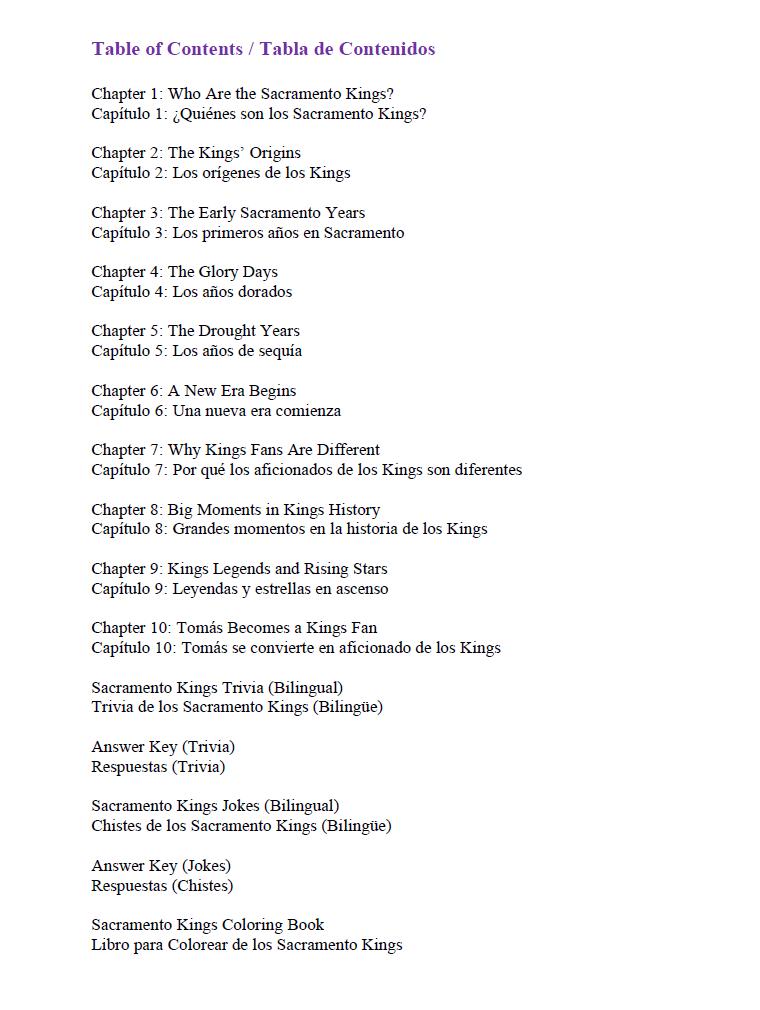 Designed for young fans and bilingual readers, this engaging book tells the team’s story in both English and Spanish, making it easy and fun for kids to learn about their favorite team. The interactive activities like trivia and coloring keep children entertained while they discover the legacy of the Kings.